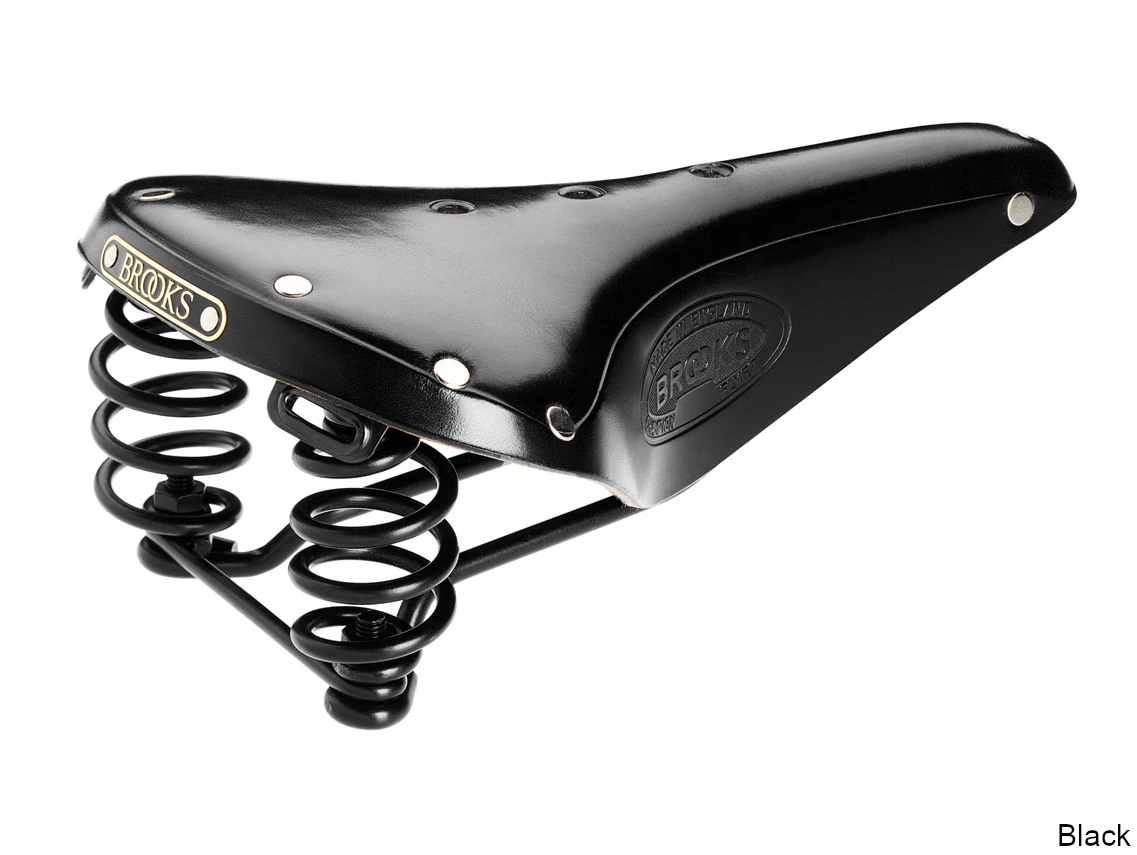 The Flyer is a touring saddle with suspension springs based on theirΒ classic Brooks B17.