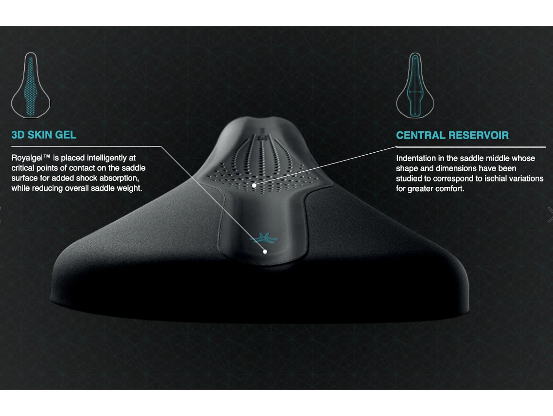 3D Skin Gel –Β RoyalgelΒ is placed intelligently at critical points of contact on the saddle surface for added shock absorption, while reducing overall saddle weight.