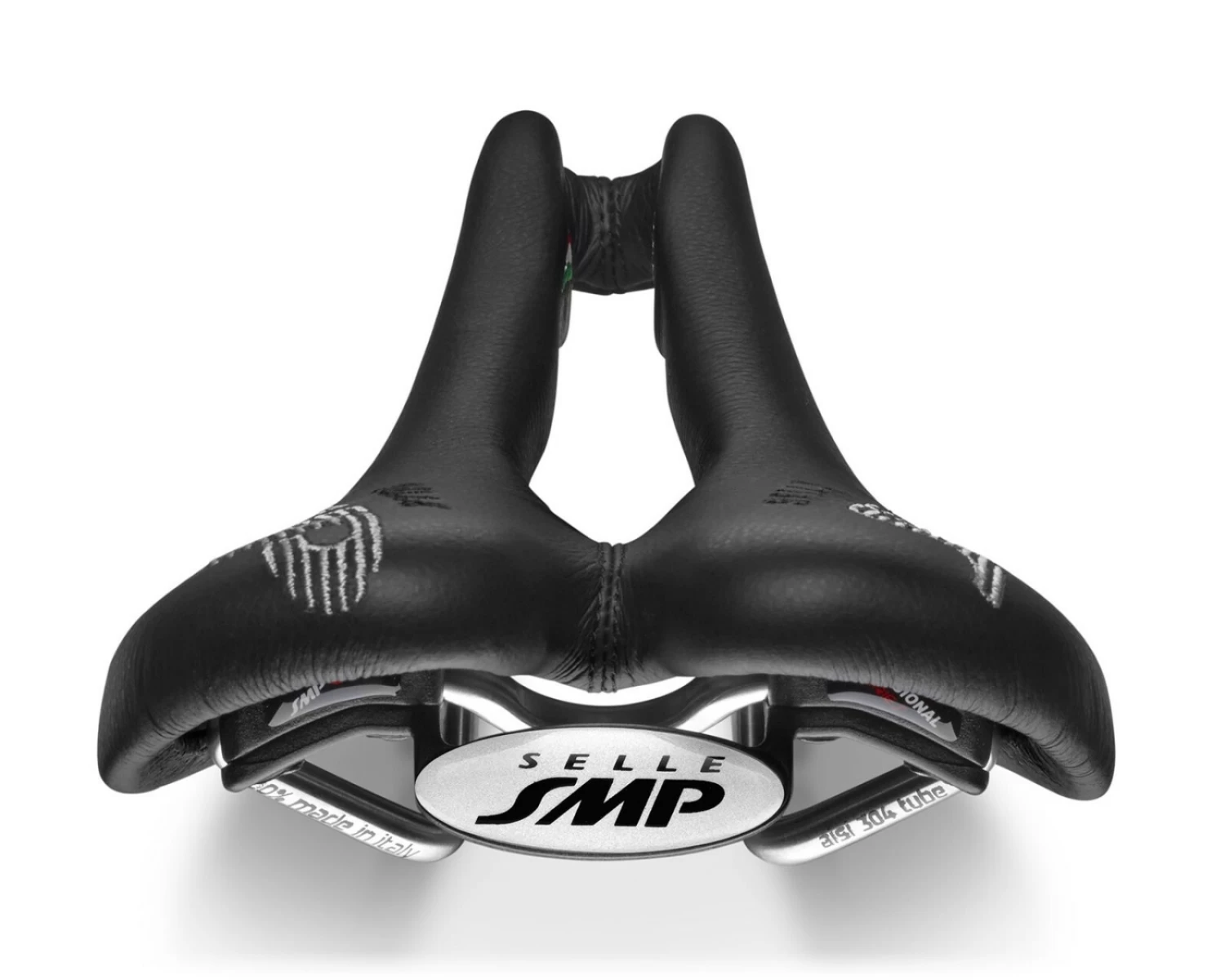 Drakon is the ideal saddle for sports or leisure cycling. It has the same structure as the Forma model, with a medium padding. Covered in real leather for the black models and microfiber for the coloured models. It has excellent all-round features and is particularly suitable for anyone with a medium-wide pelvis. Drakon is padded with elastomer in the supporting points for the ischial tuberosities and buttocks. The Selle SMP patented features, including the completely open central channel, the original front nose and raised rear support, give these saddles a fascinating aerodynamic style. The Drakon model is the intermediate solution between the Dynamic and Lite 209 models, which is particularly suitable for anyone with a medium-wide pelvis.