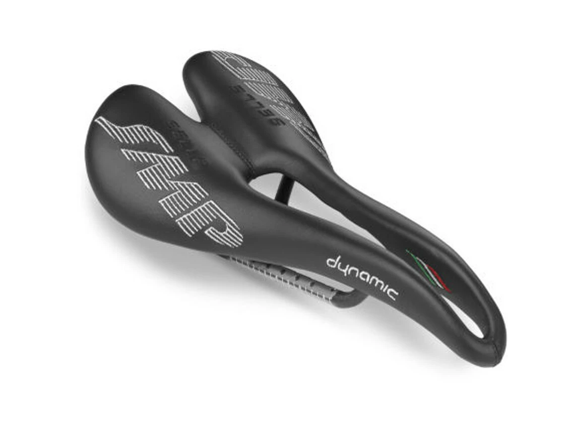 It uses the structure of the Forma model joined with minimal padding. It is covered in real leather in the black versions and microfiber in the colored versions. It has excellent “all-around” features and is particularly suited for the medium-wide pelvis. The DYNAMIC model has foamed elastomer padding where the ischial tuberosities and rear rest. The patented features by Selle SMP, such as the completely free central channel, the original eagle-beak nose and the raised rear give these models an interesting aerodynamic touch.