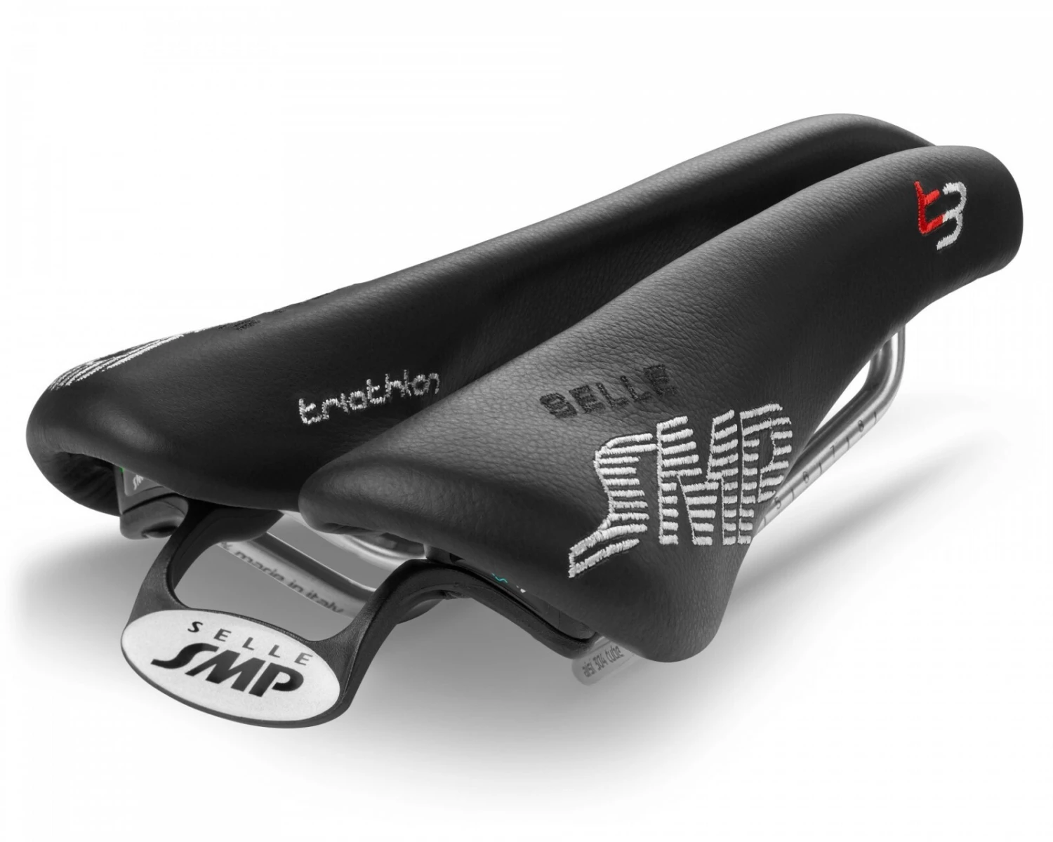 The Selle SMP T3 Triathlon Saddle for medium sized pelvises is the result of extensive biomechanical studies on saddle positioning and on the structure of the human pelvis.
